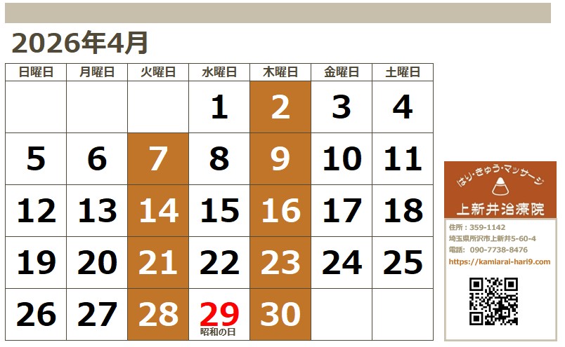 いつも上新井治療院をご利用いただきありがとうございます。
